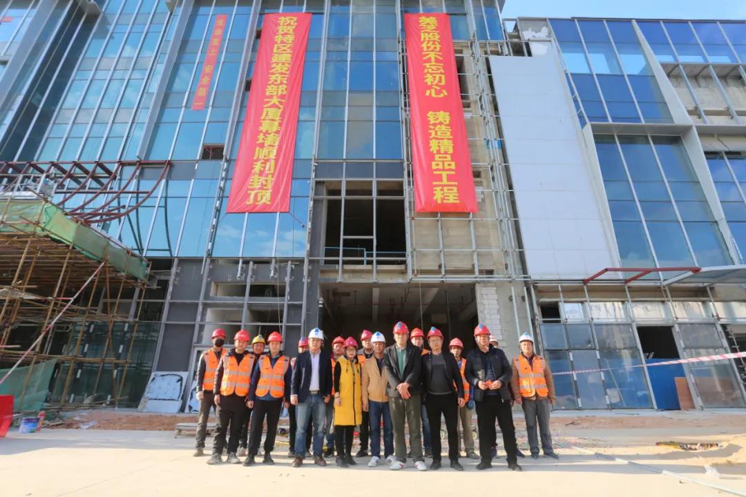 2021年1月16日,美芝股份承接的特區(qū)建發(fā)·東部大廈幕墻正式封頂,項目現(xiàn)場舉行了簡單而熱烈的封頂儀式。此次幕墻的順利封頂,標志著深圳市深汕特別合作區(qū)(以下簡:深汕特別合作區(qū))第一座集總部辦公和商業(yè)商務配套為一體的超高層綜合體建筑外立面形象工程完美收官,刷新了深汕特別合作區(qū)幕墻天際線,為合作區(qū)建設(shè)增光添彩。